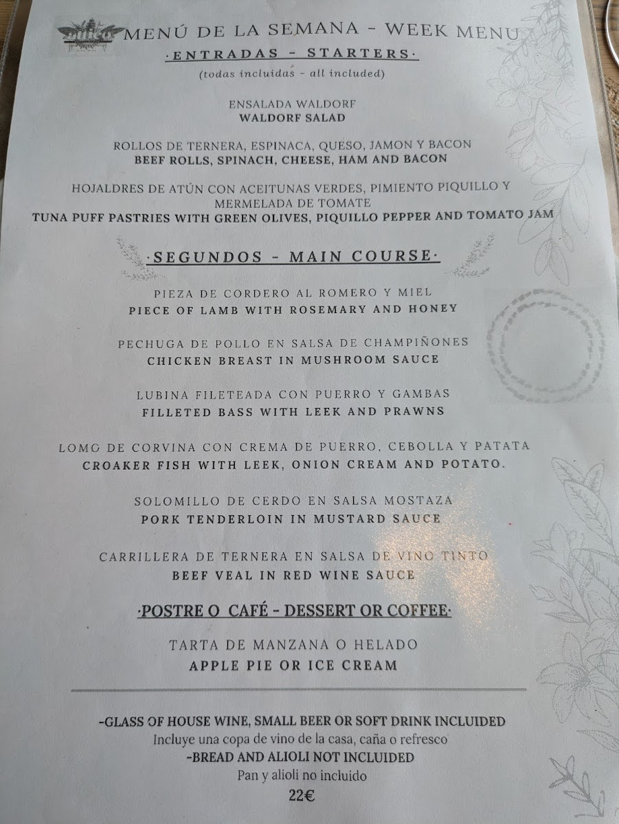 “ Excellent meal. Great views and the set menu is superb value. 3 starters, big mai, dessert and a large glass of wine for €23. Best meal and cheapest bill we’ve had in Javea all holiday. ”